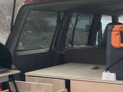We met Bella during our Spring Break 2023 Camping trip, and from the moment she adopted us, we knew we'd need to have a place for her. So, I have opted to designate this space for her and am looking for a clever way to keep her here. On the way back from our trip, she often wanted to jump down into the back seat with the kids. Her pet bed fits nicely in this space, and she's happy traveling there....Until shes not and craves some attention and tries to fit into the already crowded back seat. If I can't find a kennel/crate that will fit in this space for our dear pup for travel, I may have to fabricate some type of barrier to separate the cargo area from the seating area. I may end up returning to the modular design if there is ever a time when we don't take Bella on trips, but I think those will be very few and far between!